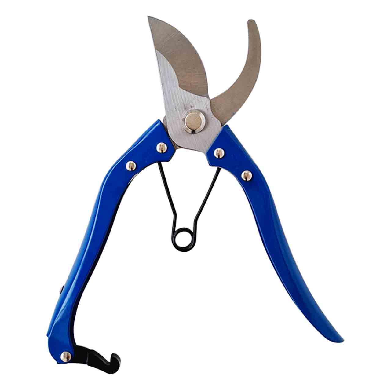 выполнен из прочной инструментальной стали с обливными нескользящими синими ПВХ рукоятками и оснащен возвратной пружиной. Секатор имеет максимальный диаметр реза 20 мм и используется для ухода за декоративными кустами, среза цветов, обрезки молодых веток и побегов. Острые стальные лезвия обеспечивают ровные и аккуратные срезы. Специальная форма рукояток улучшает хват и препятствует выскальзыванию.