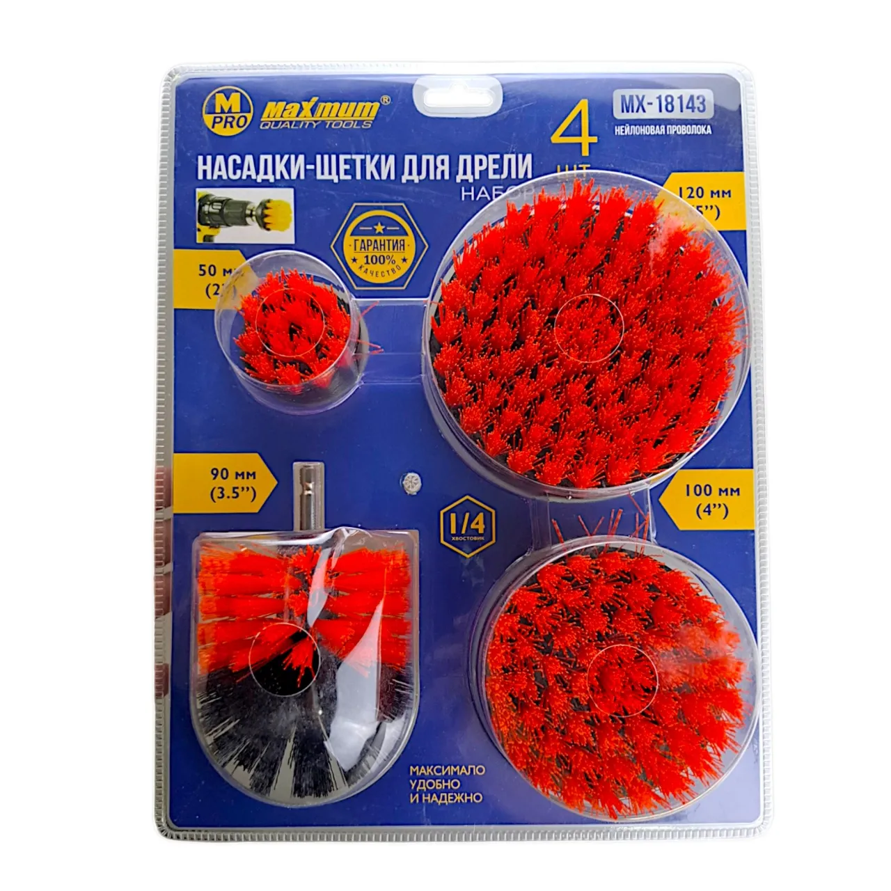 Набор нейлоновых щеток-насадок от "MAXIMUM" — это популярное и практичное решение для множества задач по очистке и обработке поверхностей. Это комплект из четырех нейлоновых щеток, предназначенных для установки в электроинструмент с вращающимся патроном: дрель, шуруповерт или специализированную щеточную машинку. Их главная особенность — шестигранный хвостовик 1/4" (6.35 мм), который является стандартом для быстрозажимных патронов и позволяет мгновенно менять насадки без использования ключа.