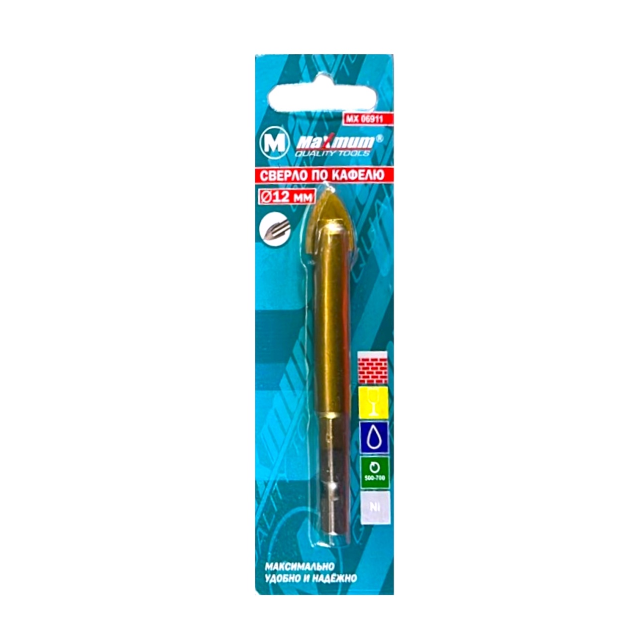 Сверло по кафелю и стеклу 12 мм от "MAXIMUM" подходит для любого типа керамики и других, сходных по физико-химическим свойствам, материалов. При правильной работе такого сверла хватит на долгое время при этом оно практически не истирается, и затачивать его не нужно.