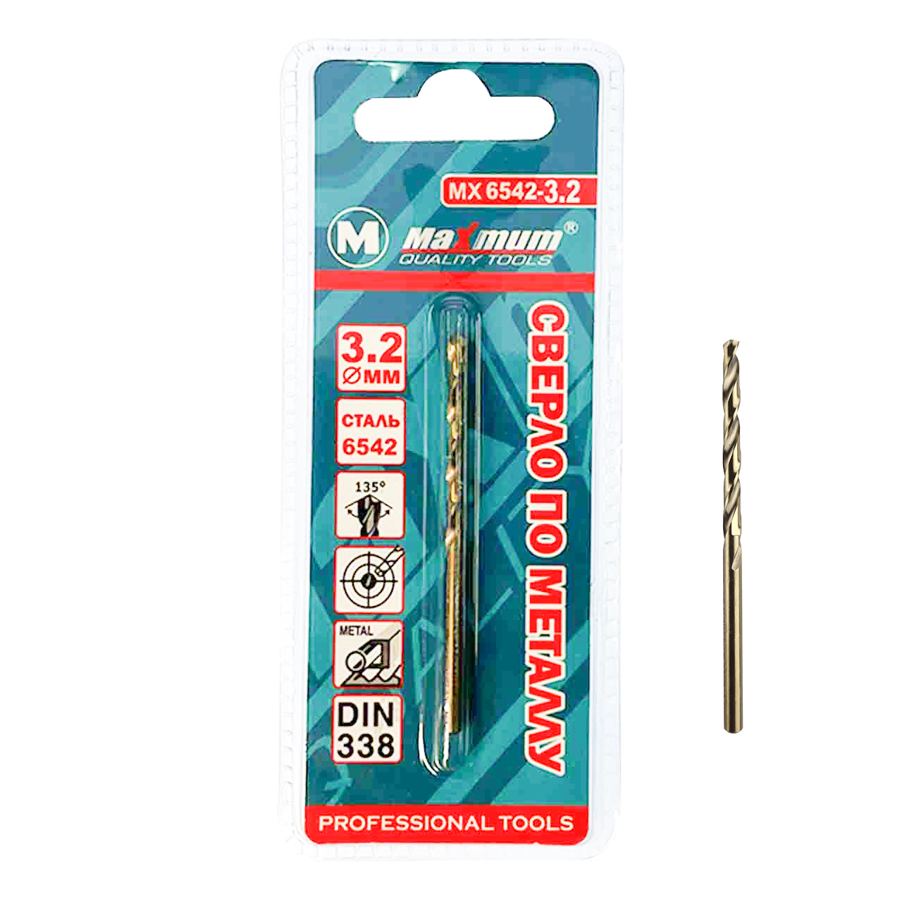 Сверло по металлу 3,2 мм от Maximum с цилиндрическим стержнем и парными режущими кромками на конце предназначено для работы со сталью, серым чугуном, алюминиевым сплавом и т.п. Винтовые канавки на стрежне отлично отводят стружку.